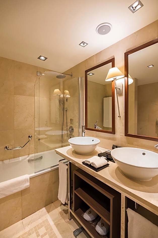 Providing free toiletries and bathrobes, this suite includes a private bathroom with a walk-in shower, a bath and a bidet. The suite features carpeted floors, a seating area with a flat-screen TV with cable channels, air conditioning, soundproof walls, as well as a mini-bar. The unit offers 2 beds.